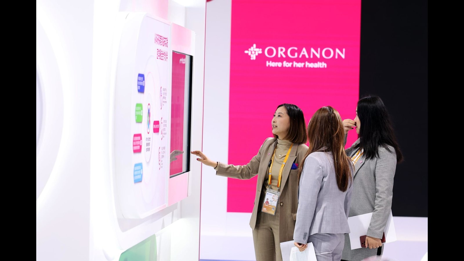 SHANGHAI, CHINA – NOVEMBER 05: People visit the booth of Organon during the 7th China International Import Expo (CIIE) at the National Exhibition and Convention Center (Shanghai) on November 5, 2024 in Shanghai, China. The 7th China International Import Expo (CIIE) kicked off in Shanghai on November 5. (Photo by Tang Yanjun/China News Service/VCG via Getty Images)